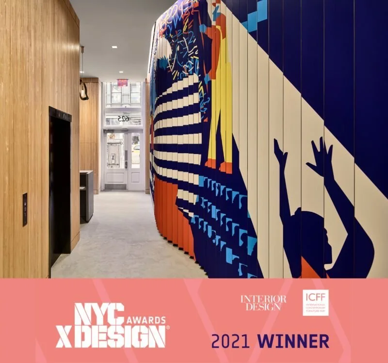 A 2021 NYCxDesign award winner for Graphics+Branding. Sponsored by Interior Design Magazine and ICFF. Art by Ben Wiseman. Art Consulting and Installation by CULTURE A. Interior design and architecture by Design Republic.